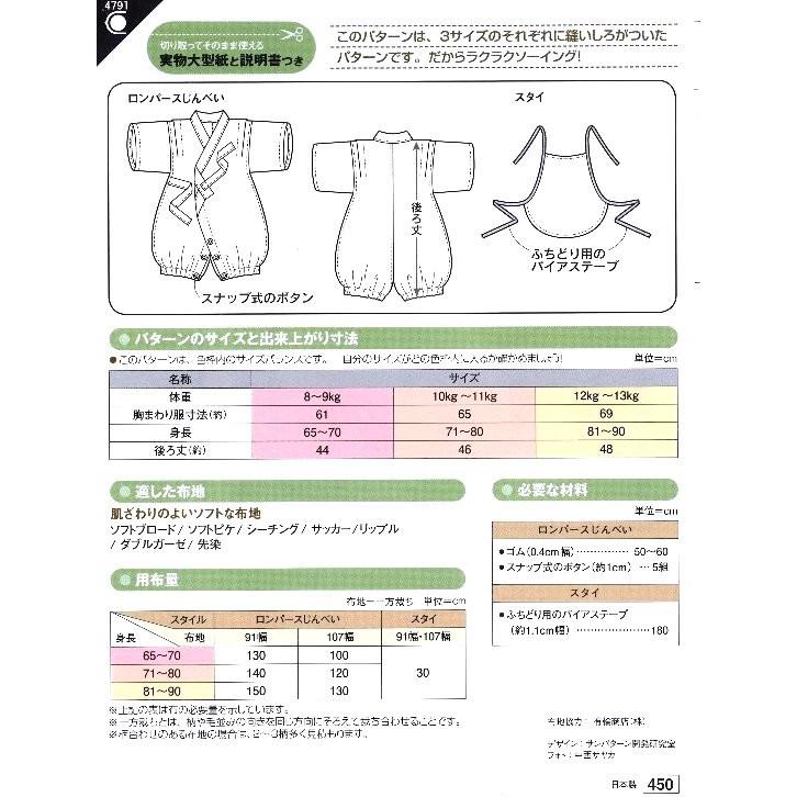 ソーイングパターン 型紙 ベビーロンパースじんべい 4791 H Ki オカダヤ Okadaya 布 生地 毛糸 手芸用品の専門店